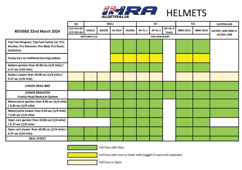 Please be advised that the IHRA Helmet Matrix has been