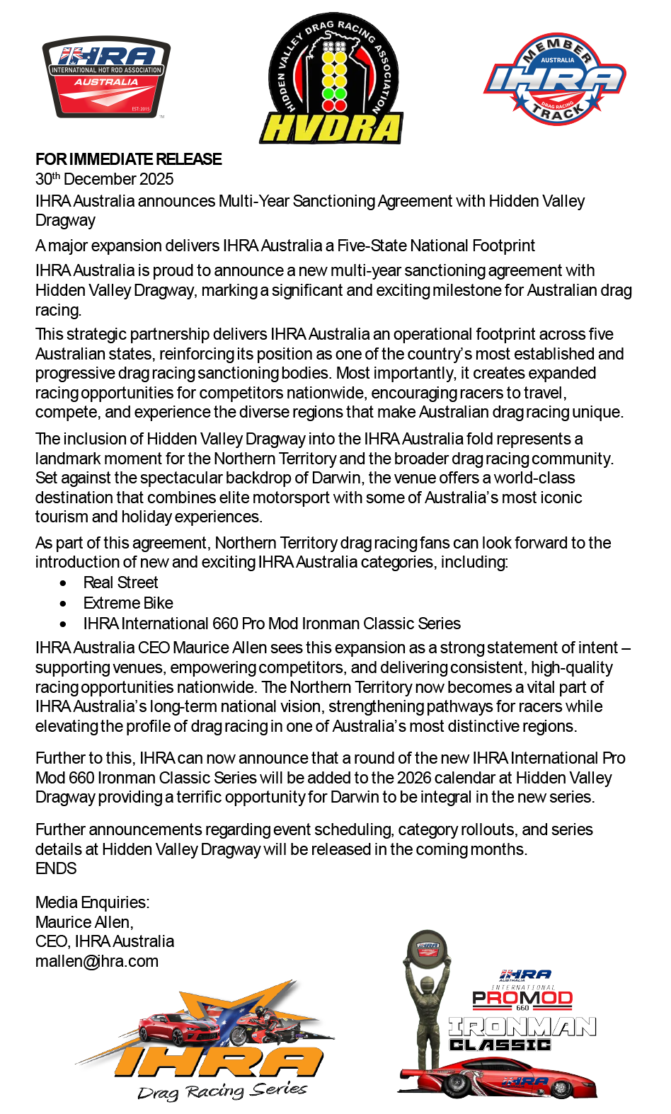 IHRA Australia Announces New